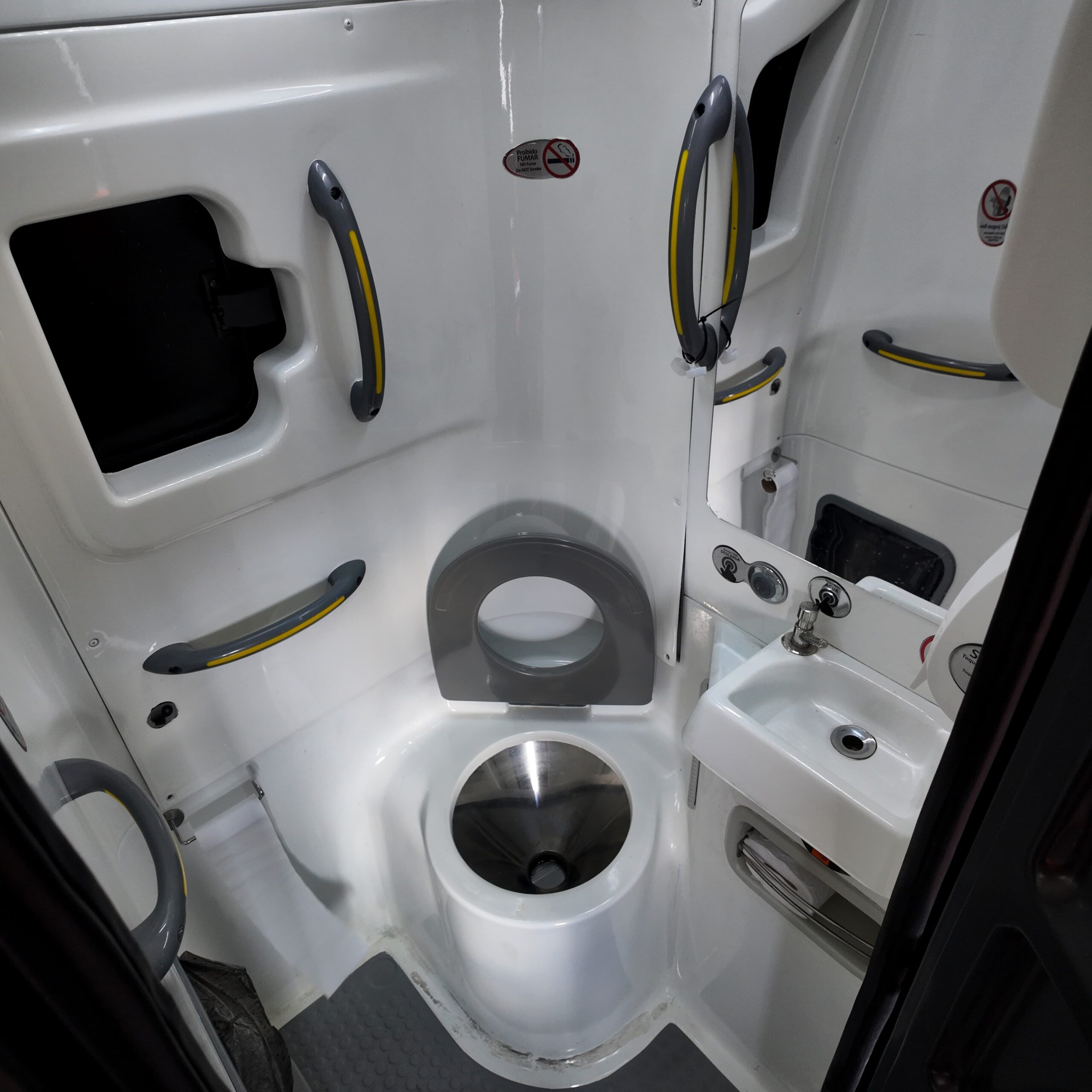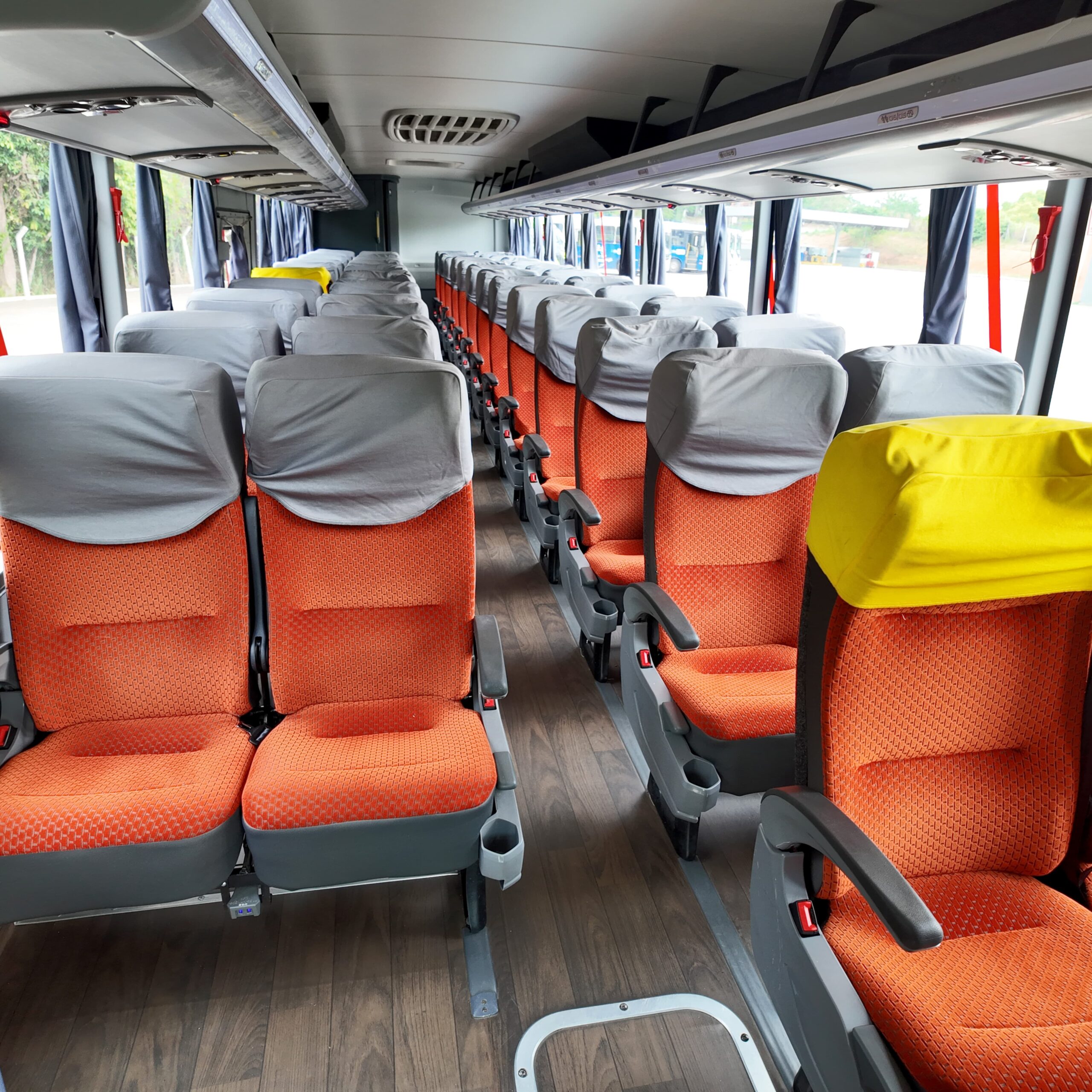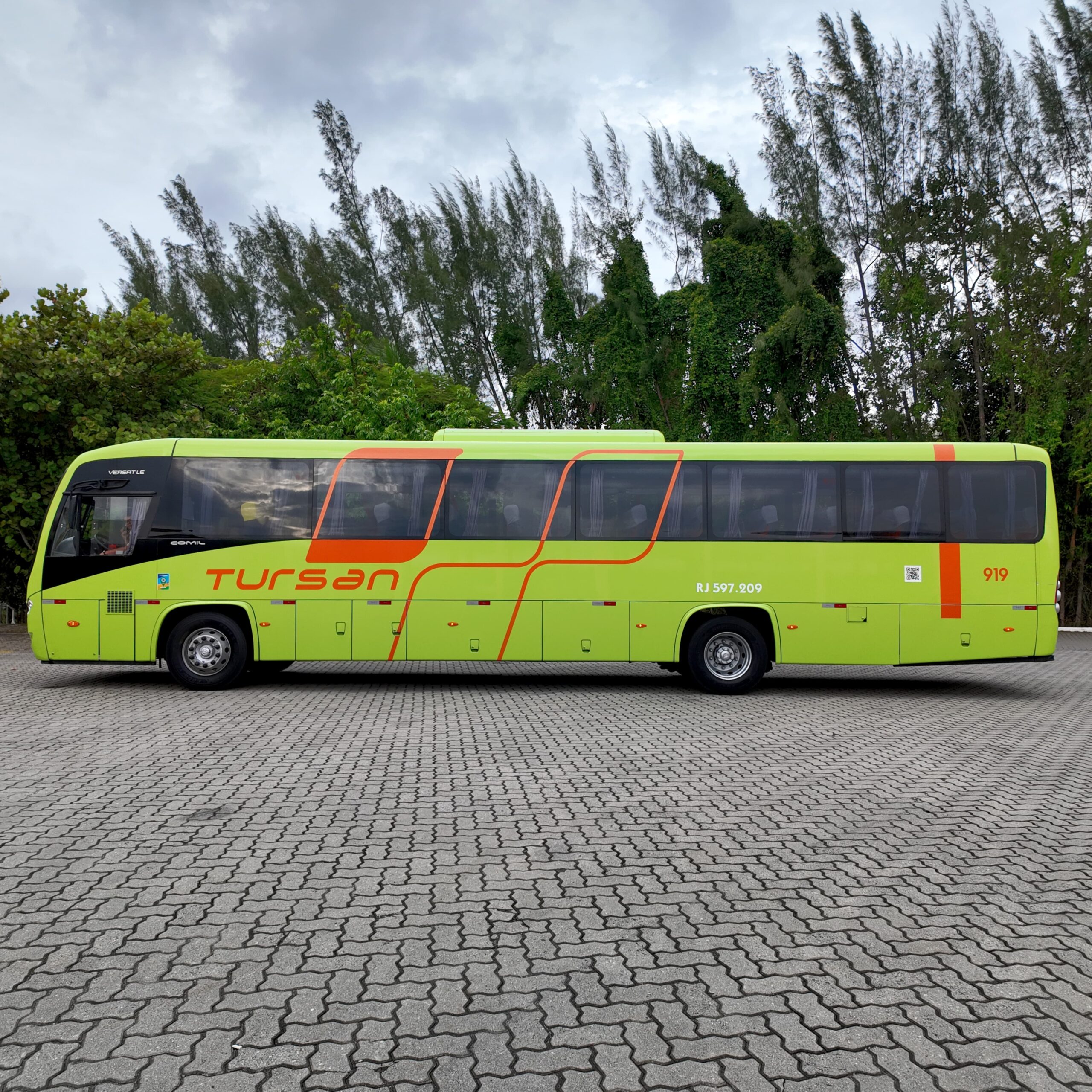- Informações do Veículo: 46 lugares, banco soft, cabinado, ar condicionado de teto, vidros colado, suspensão pneumática e WC.