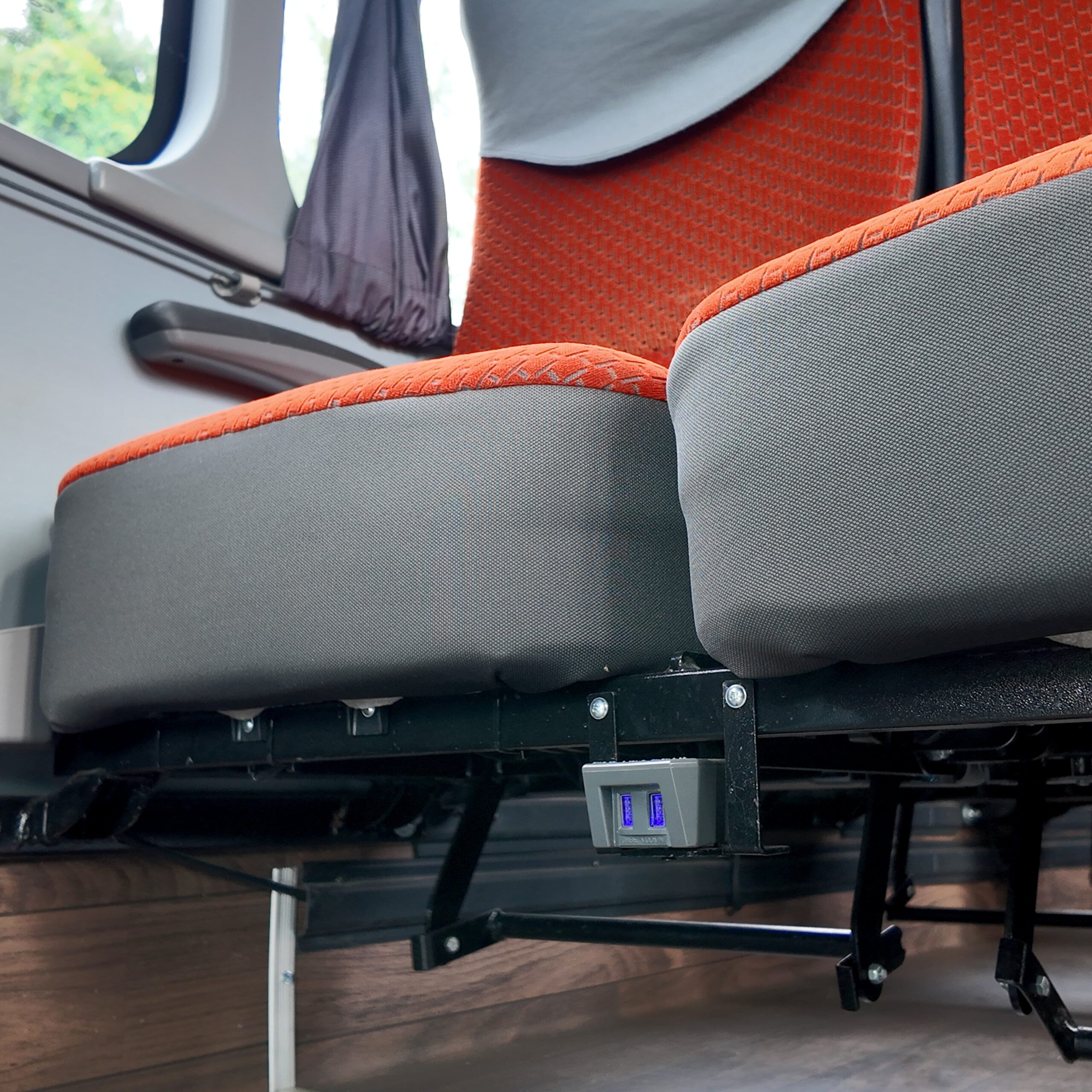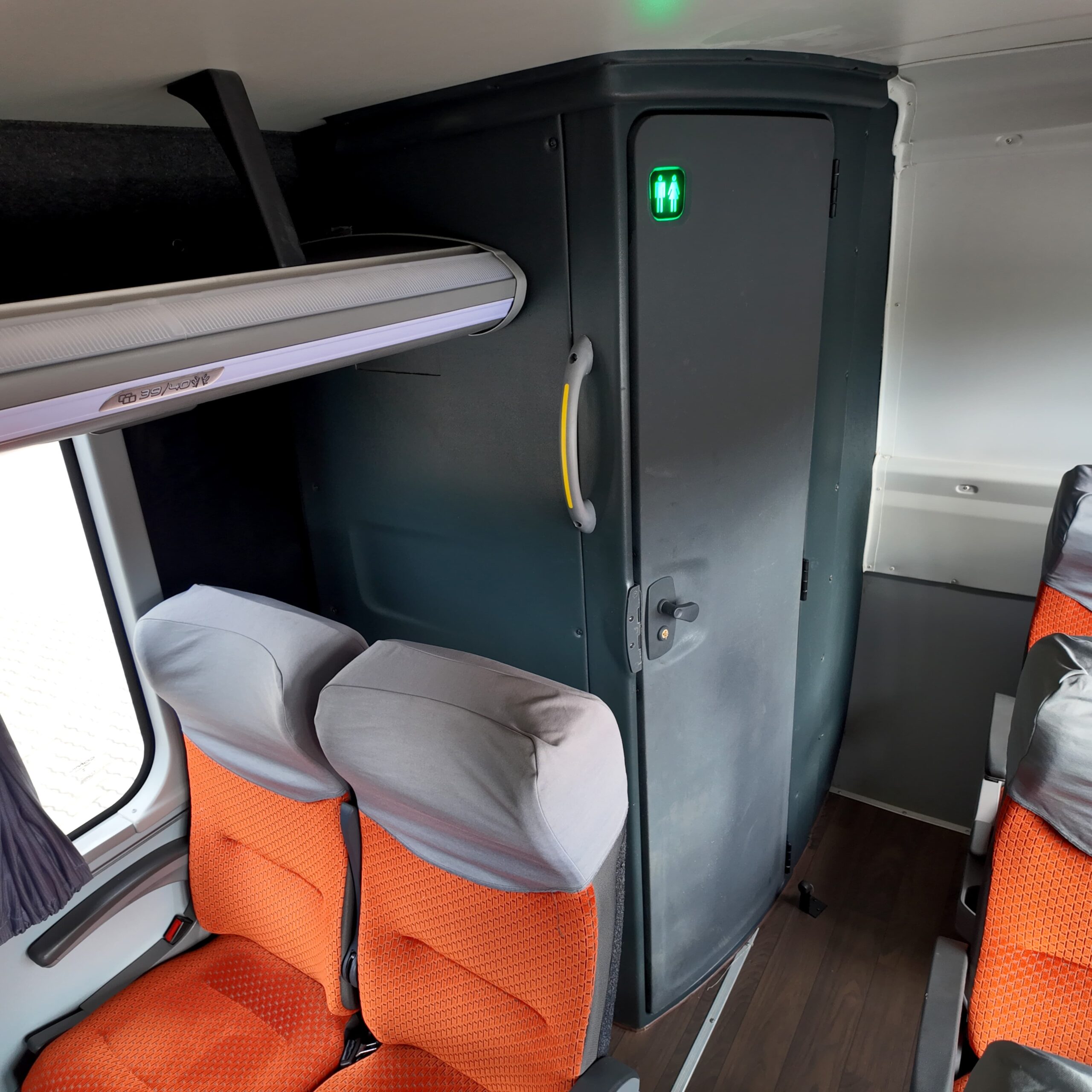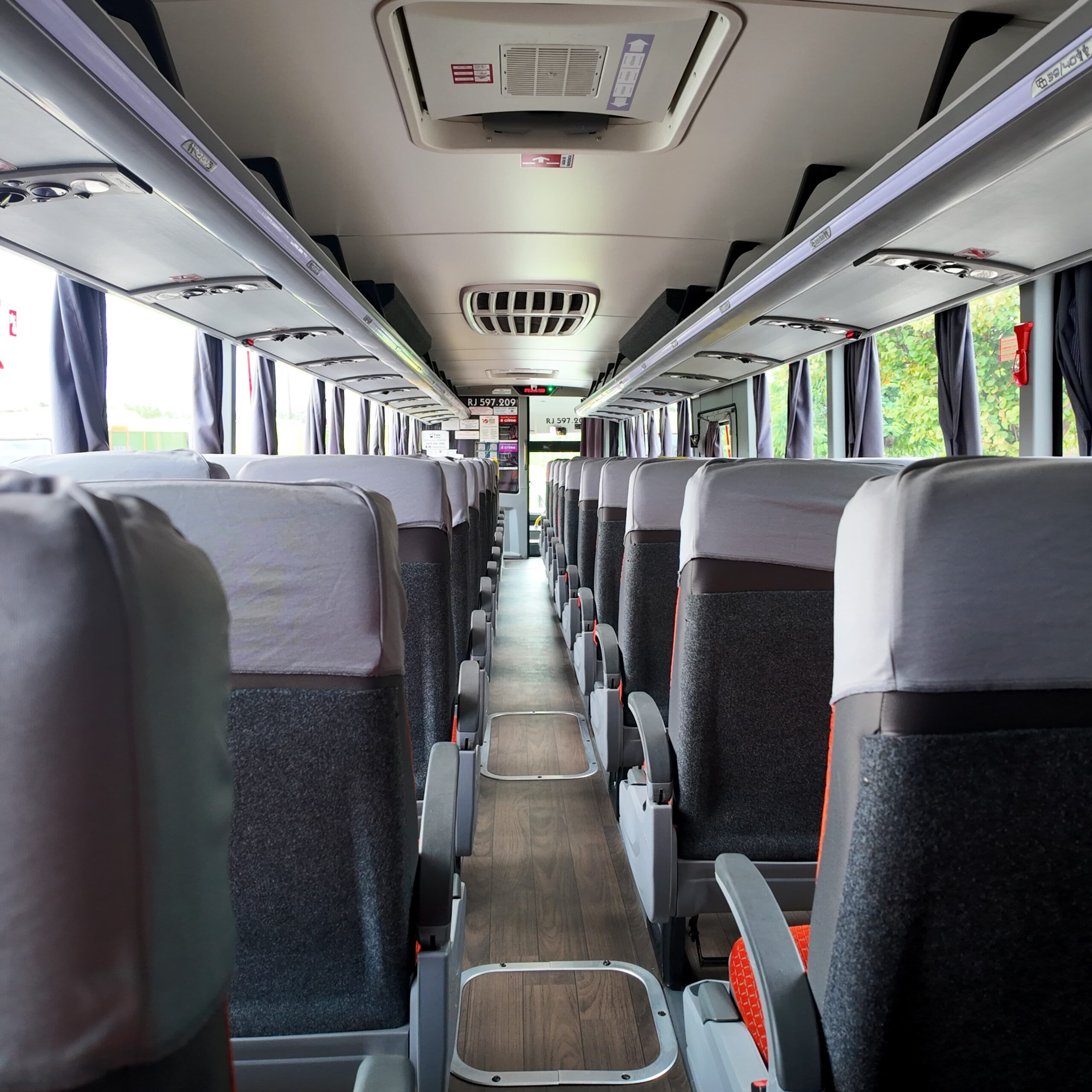 - Informações do Veículo: 46 lugares, banco soft, cabinado, ar condicionado de teto, vidros colado, suspensão pneumática e WC.