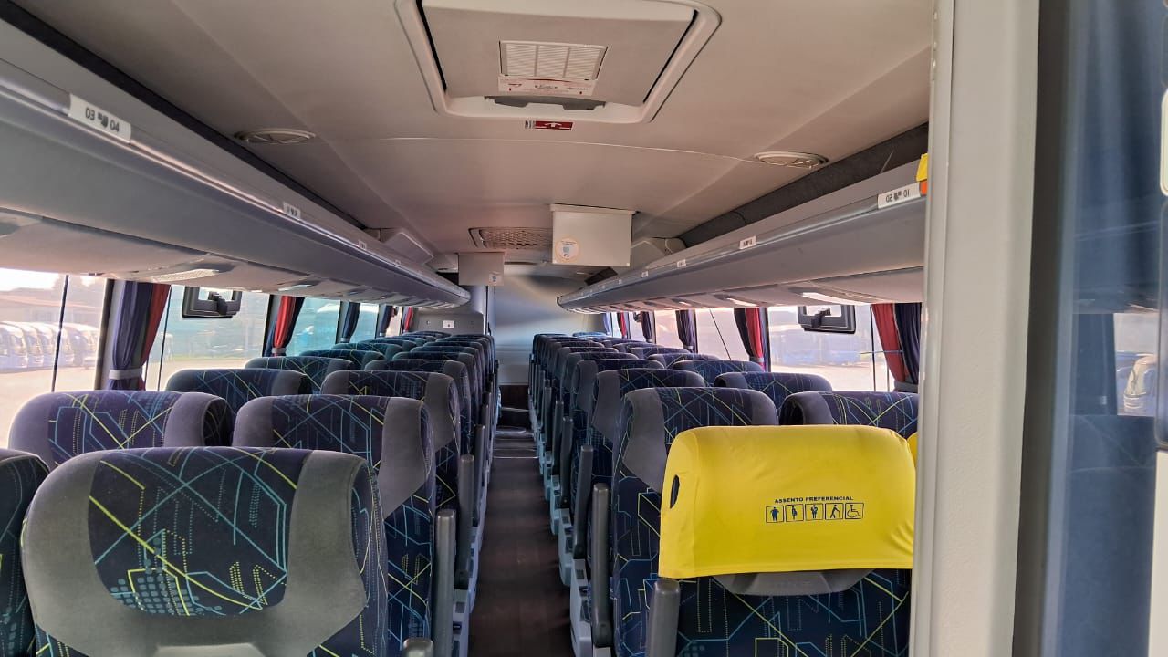 - Informações do Veículo: 46 lugares, banco soft, cabinado, ar condicionado de teto, vidros colado, suspensão pneumática e WC.